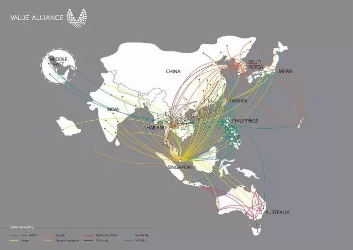 这几家公司发布的联合声明显示,“价值联盟”(The Value Alliance)是亚太地区廉价航空公司之间缔造的规模最大的联盟,该联盟和所谓的全面服务航空公司之间常见的连接安排不同,因为“价值联盟”还允许乘客有一些附加选择,例如挑选座位以及基本费用的餐食。