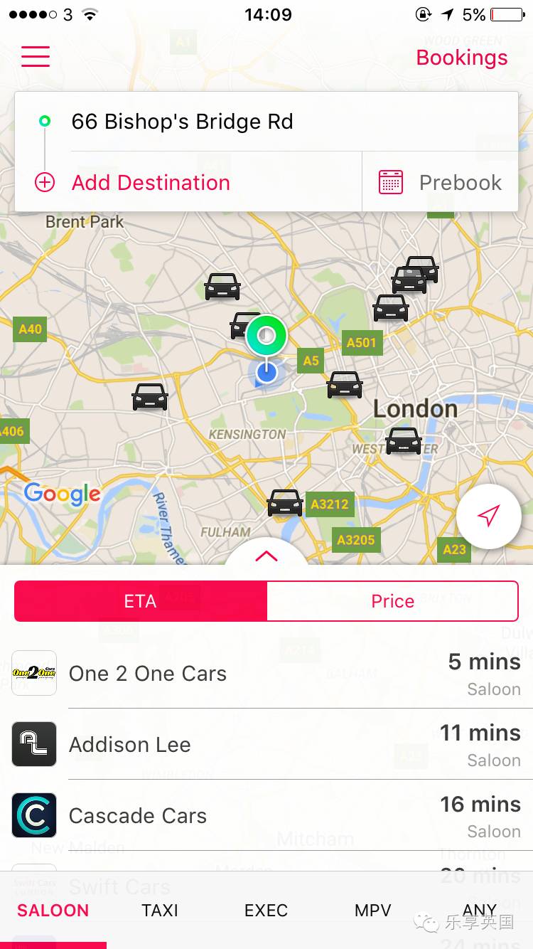 这款软件的界面做的还算清爽,也便于使用。 主要优点在于固定价格,在伦敦用过Addison Lee的同学们或者生活在英国各大村子里的同学们应该对于固定价格并不陌生,叫好车后说好5镑即使堵上一个小时也不会被加价,这在道路拥堵,处处修路的伦敦显得格外友好。