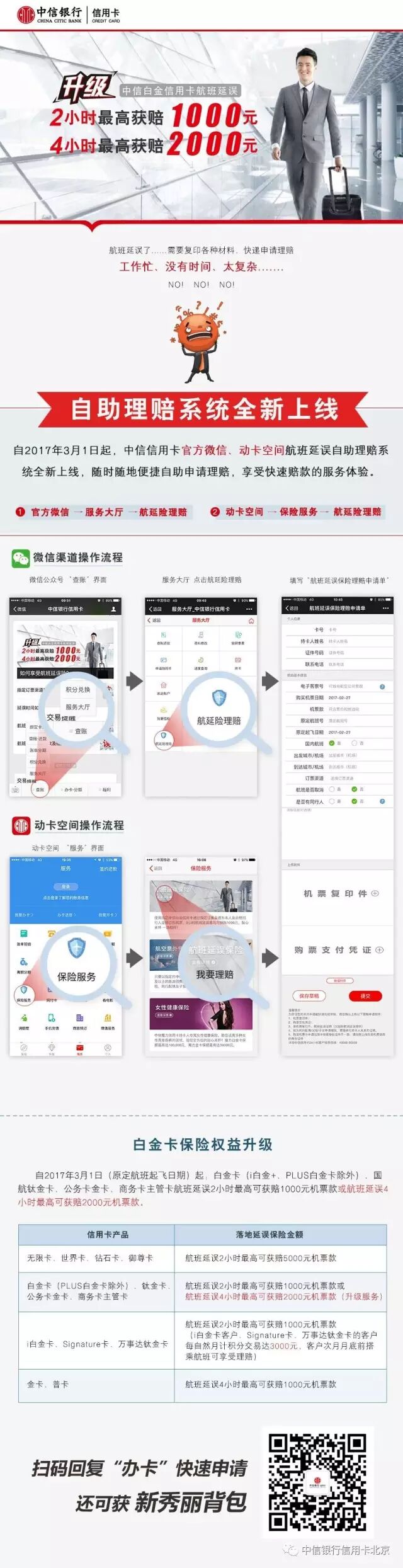 中信白金延误2小时陪1000元可自助赔付了