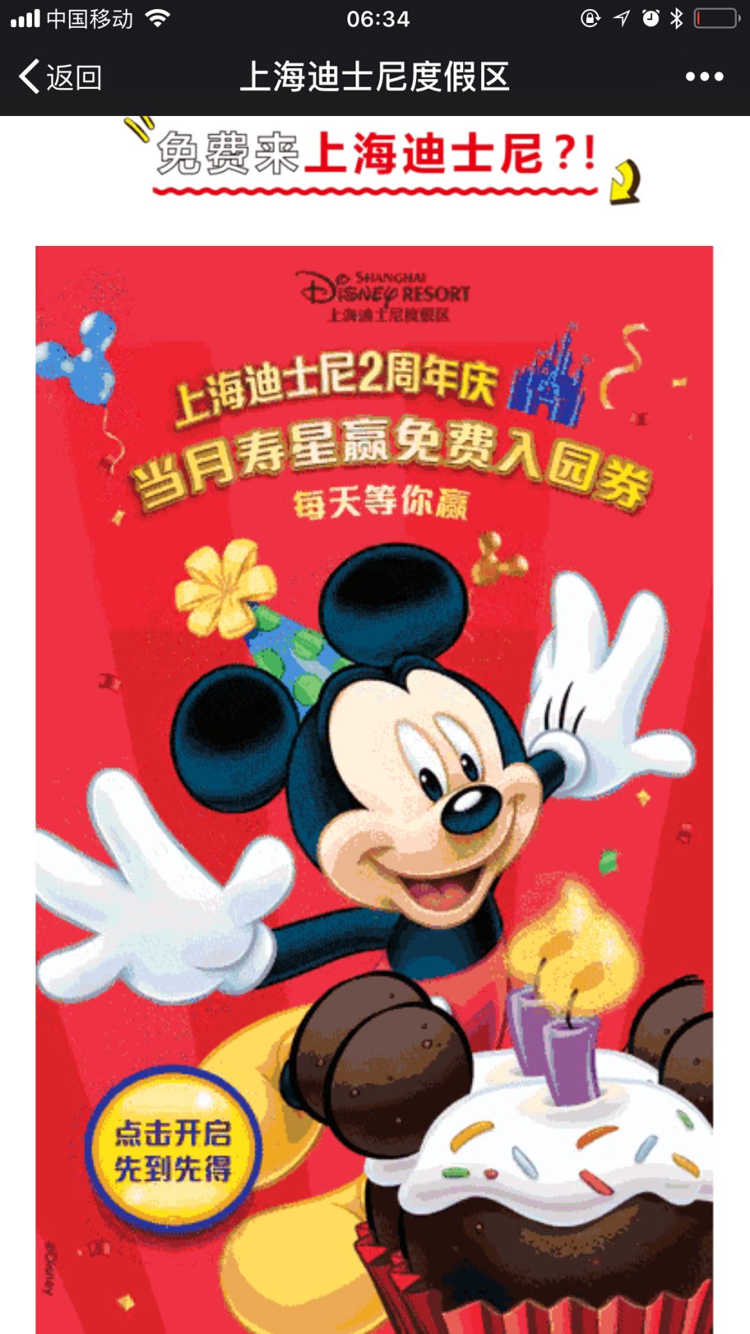 5、领取方法:关注“上海迪士尼度假区”微信,欢迎语里有活动页面,进入后点击图片,即可参与