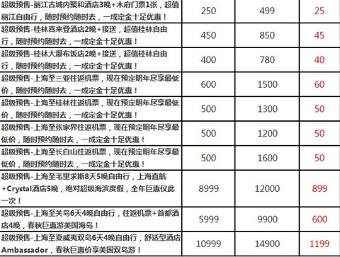 春小秋知道单从出发时间上给了小伙伴更多选择空间,有可能还不足以打动你,关键还是要看产品价格的折扣力度!