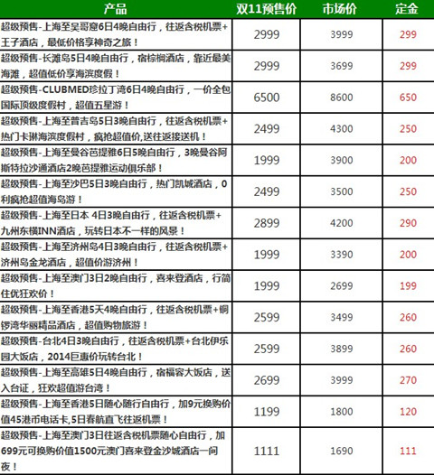 昨天春小秋和各位小伙伴分享了本次春秋旅游网双11活动的秒杀和大促这两部分的活动产品分析。对于近期有出行计划的小伙伴们来说秒杀产品和大促都是一个不错的选择。但如果你还没有明确的出行计划但又不想错过双11这次大促的机会,那怎么办呢?所以考虑到此部分用户的需求,春秋这次特别策划了一个2014超级预售的活动,具体怎么个预售法,怎么个划算法,请听春小秋给各位慢慢道来!
