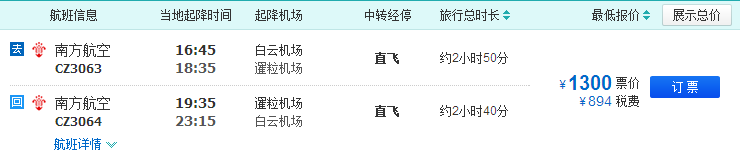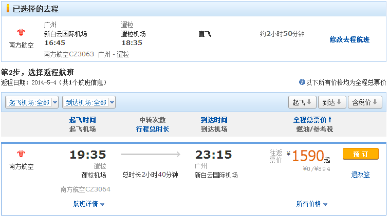 先上去哪儿网搜索广州—暹粒,挑一个发现旅行含五一小长假的旅行时段,4月29号去,5月4号回,去哪儿往返最低票价:往返含税1300+894=2194元/人。