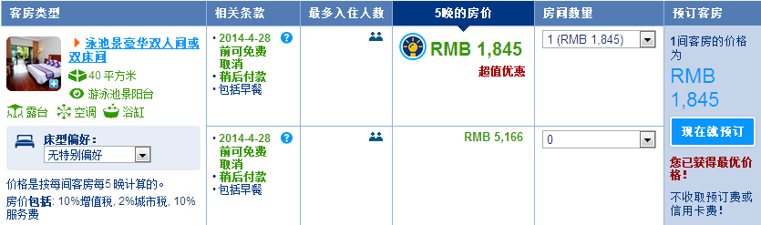 搜索五星的吴哥奇迹温泉度假村(Angkor Miracle Resort & Spa),网站评分为“8.2 非常好”,嗯~~再一查,五晚双人间超值优惠价为1845元。单人价要除以2,为992.5元。