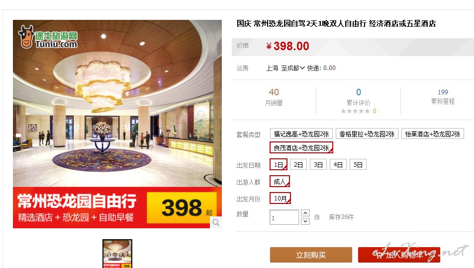 【预订链接】http://detail.tmall.com/item.htm?spm=181.7397876.a214u0k.3.9TTvaE&id=41145097412 【入住时间】 10月1日、10月5日:398元 10月2日-10月4日:598元 【价格包含】 1、常州良茂国际大酒店标准间1晚 ...