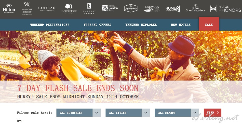 【预订链接】http://www.hiltonweekends.co.uk/sale 【预订时间】 截至10月12日 【出行时间】 2014年10月10日-2015年3月31日 每周五至周日(即周末入住) 【活动信息】 39英镑起 以下国家参与: 奥地利、比利时、 ...