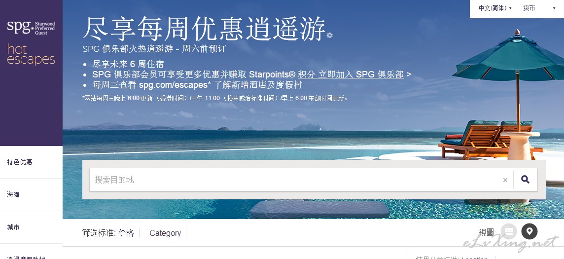 【预订链接】http://www.spghotescapes.com/zh/all 【预订时间】 截至10月19日06:00(北京时间) 【入住时间】 截至11月26日 【参与国家】 SPG 俱乐部会员房价: 尼日利亚 1158元 卡塔尔 1470元 阿联酋 447元起 ...