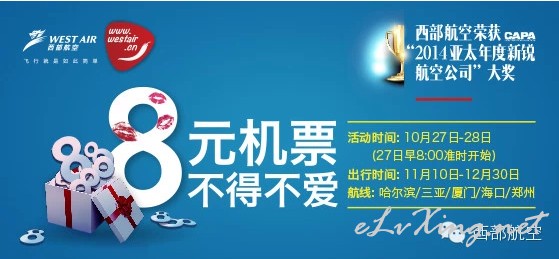 http://www.chinawestair.com/frontend/eightyuan/eightyuan!doQuery.action 第一弹:10月27日-10月28日(27日早8:00准时开始),西部航空官网8元专区旅游热门城市聚集!哈尔滨、三亚、厦门、海口、郑州这些风景如 ...