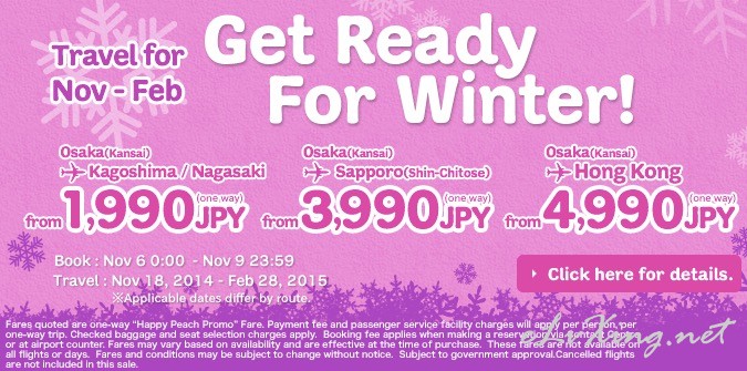 本帖最后由 E旅行机票达人 于 2014-11-10 09:24 编辑 链接:http://www.flypeach.com/campaign/winter_sale_20141106.aspx 订票日期:11月5日23点-11月9日23点 旅行日期:11月18日-2015年2月28日 航线: 大 ...
