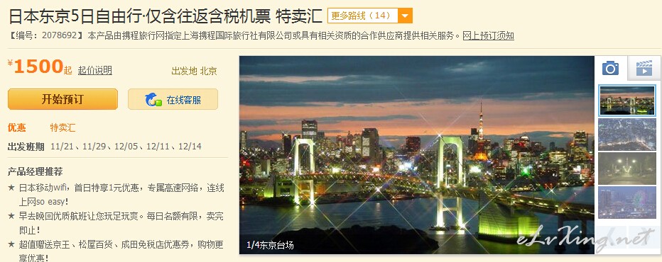 本帖最后由 E旅行新闻官 于 2014-11-12 13:13 编辑 预订链接:http://vacations.ctrip.com/freetravel/p2078692s2.html 出行日期:11月21日 价格包含: 往返含税机票一张。 航班参考: 去程 11/21& ...