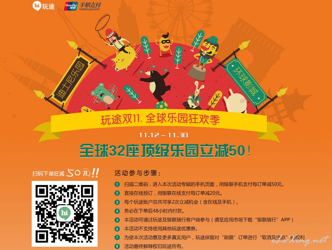 本帖最后由 大海航行 于 2014-11-12 17:58 编辑 #玩途大促第二波,全球乐园狂欢季# 11月12日至11月30日,全球32座顶尖乐园门票,手机银联支付立减50,在线支付立减20!把剁手节的快感延续下去吧~ 立即扫码或戳 ...