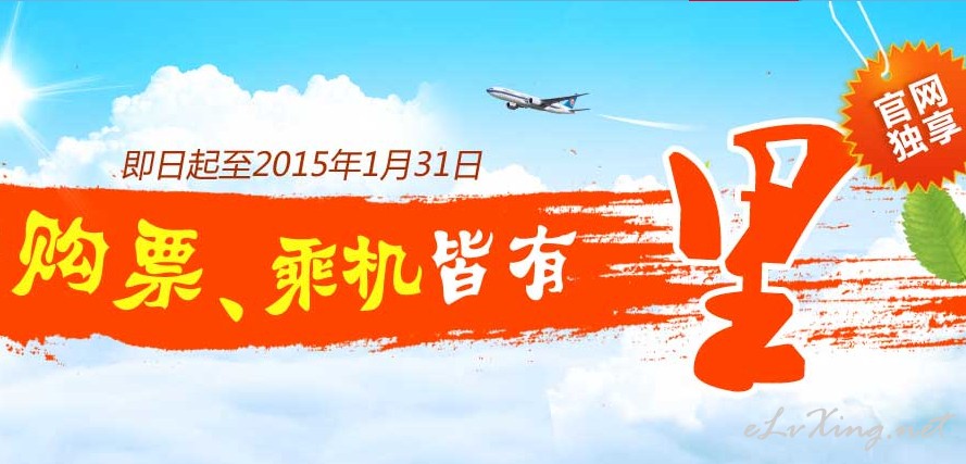 本帖最后由 huyi 于 2014-11-22 14:08 编辑 http://www.csair.com/cn/cmsad/2014/20141121/20141107.html 活动日期:即日起至2015年1月31日 活动一: 通过南航官网/南航移动客户端为本人购票并于2015年1月31日 ...