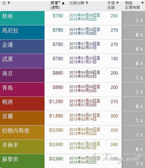 本帖最后由 E旅行新闻官 于 2015-1-20 11:12 编辑 国泰 x 港龙 第117期 fanfares 11個城市只需$790起 武汉1028元,马尼拉936元,金边1093元,桂林1028元,南京1108元,青岛1108元,岘港1447元,首尔1896元,约翰 ...
