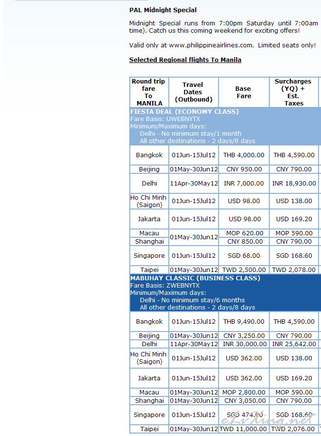 本帖最后由 summitexu 于 2012-4-1 00:45 编辑 上海往返马尼拉1640CNY含税,北京往返马尼拉1740CNY含税 。出行日期:五月到六月http://www.philippineairlines.com/special_offers/latest_offers/midnight_spec ...