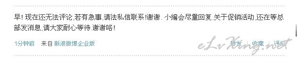 本帖最后由 conan0804 于 2012-4-3 22:10 编辑 宿务新浪微博刚刚发的消息,估计新一轮促销即将开始,应该力度不小。