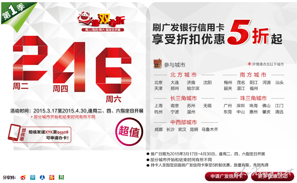 http://card.cgbchina.com.cn/Info/16616827 广发2015 Q1活动