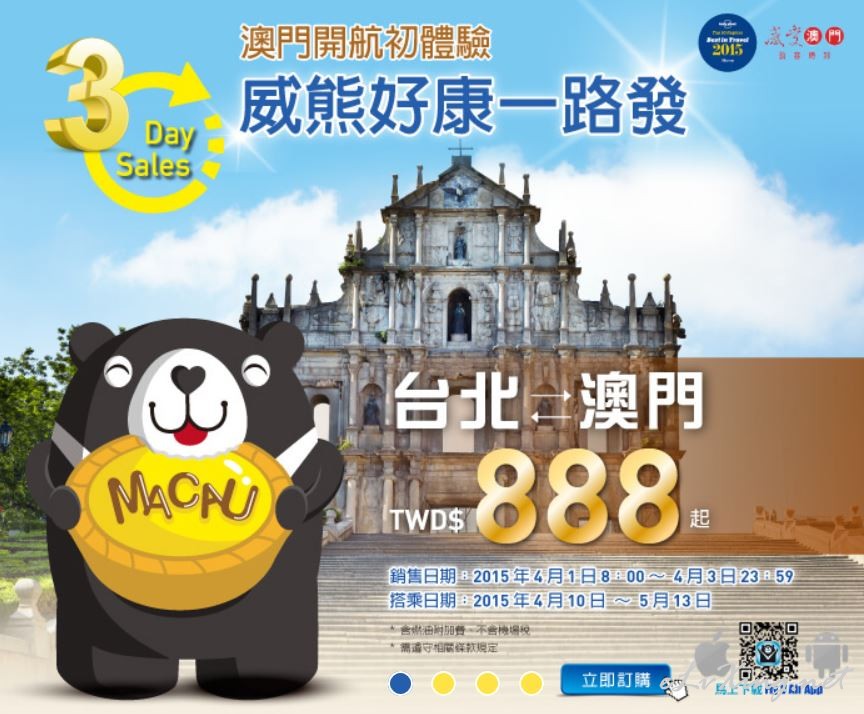 4月1日8点开卖 订票日期:2015年4月1日8am至4月3日 旅行日期:2015年4月10日至5月13日 http://www.flyvair.com/zh/