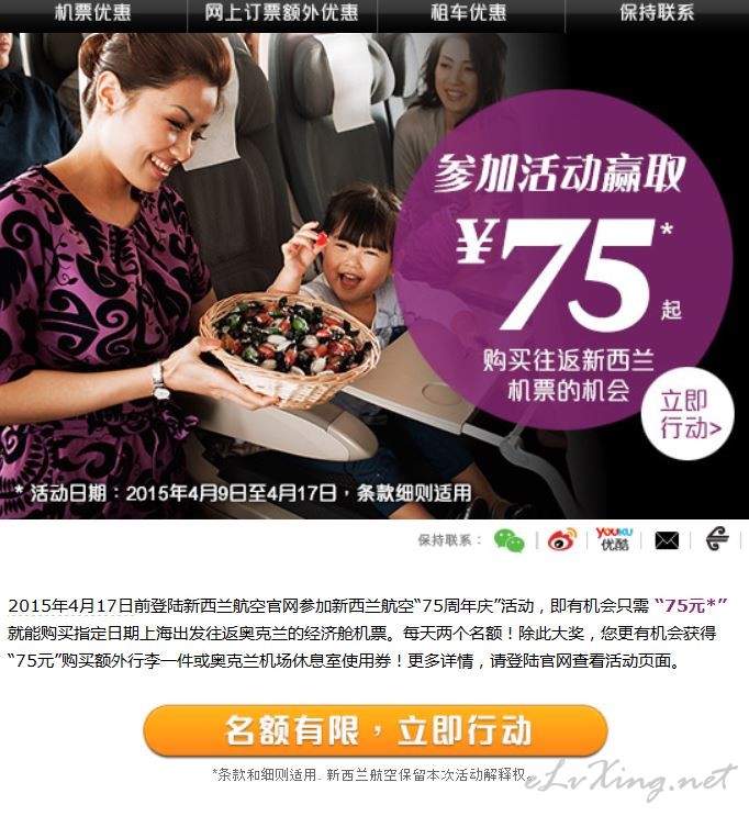 本帖最后由 belmaiastar 于 2015-4-9 10:57 编辑 抽到75元往返机票,不含税。 由于刚从nz回来。。貌似还不能转让。。。。 |
