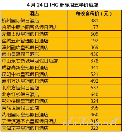 【预定连接】IHG周五半价 【预定时间】仅限4月24日 【入住时间】7月31日(含)前 【活动简介】 大中华区精选热门酒店将周周持续更新,于每周五限时一天,预订精选酒店即可获享5折惊喜房价。 【亮点】 1、周五预 ...