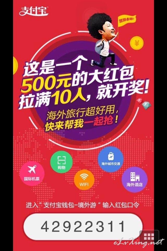 | 本来准备领楼主的 不小心从新开了一个 如果楼主的满了就用我的红包密码吧 94147719 是直接在支付宝红包里领 不用去境外游里面 |