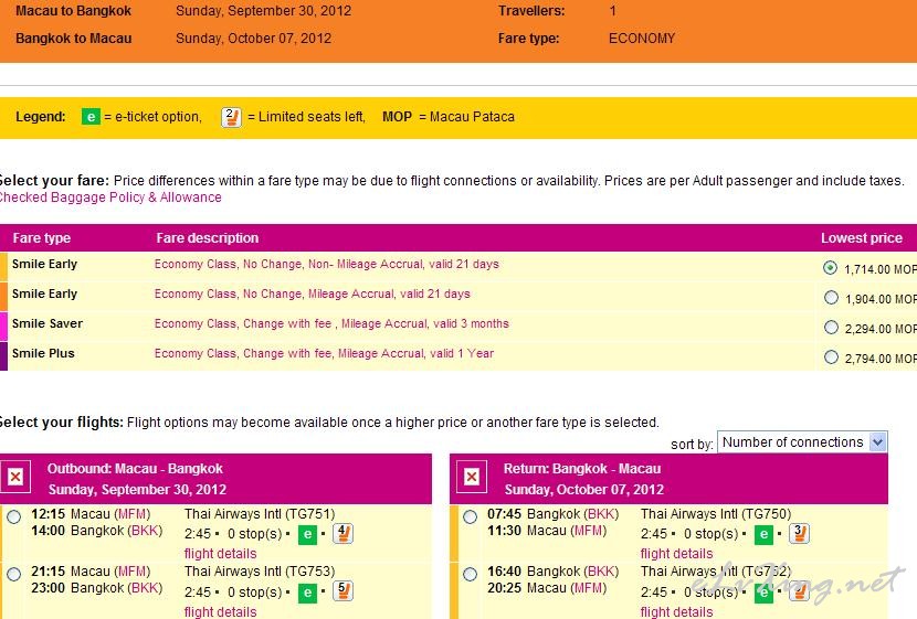 可预定航班从7月7日-3月16日,一天2班,时刻表如下: 1、澳门至曼谷12:15-14:40、21:15-23:00 2、曼谷至澳门07:45-11:30、16:40-20:25 我查了,春节、国庆都有票,所以1350元对于这个时段是非常划算。 ...