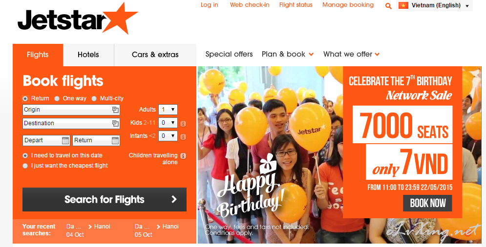 捷星七周年越南航线7VND促销! 已入手河内到大叻!双人单程折人民币一百多而已!巴士都不止这个价! 配合芽庄洲际point break一级棒!