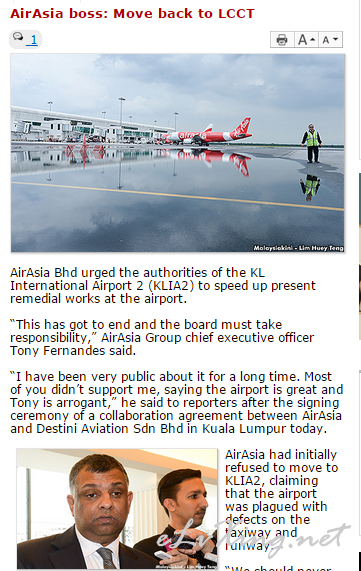 亚航不过是想趁政坛乱局索取一些甜头而已,原本亚航必须在01 Aug由亚庇 T2搬迁至T1现在索性不搬。 亚航多年前已经想要涉入建造LccT 机场领域了。 |