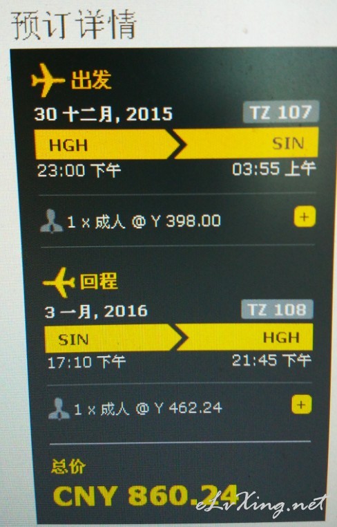 机票时间和价格不错~~就是坡县房价贵啊~~![]() |