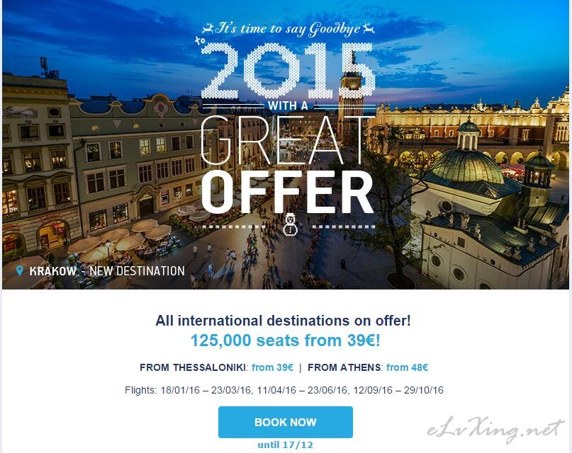Book your flight until 17.12.2015 Flights from 18.01.2016 to 29.10.2016 Available seats 125.000 http://en.aegeanair.com/plan/offers-competitions/international-offer/?utm_source=Newsletter211015-GR- ...