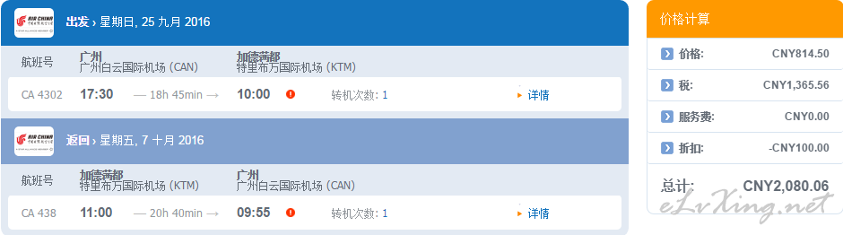 本帖最后由 Kuhn 于 2016-5-31 15:59 编辑 国庆旺季,广州经成都转飞尼泊尔加德满都,含税2080元,需请6天假。有计划去ABC徒步的,推荐入手。除最后成都回广州为Y舱外,其余均为L舱。 ...