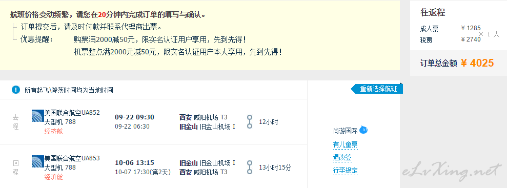 本帖最后由 Kuhn 于 2016-7-20 14:14 编辑 美联航 国庆9.24-10.6(只需请5天假即可),西安直航三藩市(旧金山),含税4025元,UA包来回2件23kg行李托运及餐食。旺季出行有此价,刚需的适合入手!预定链接》》》 ...