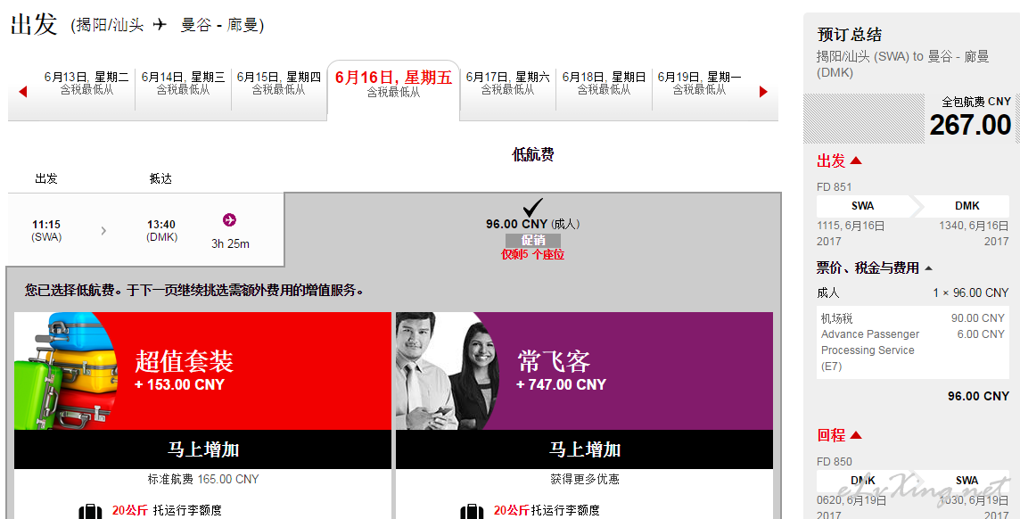 长沙-曼谷返程7月12、8月19还有0元票 |