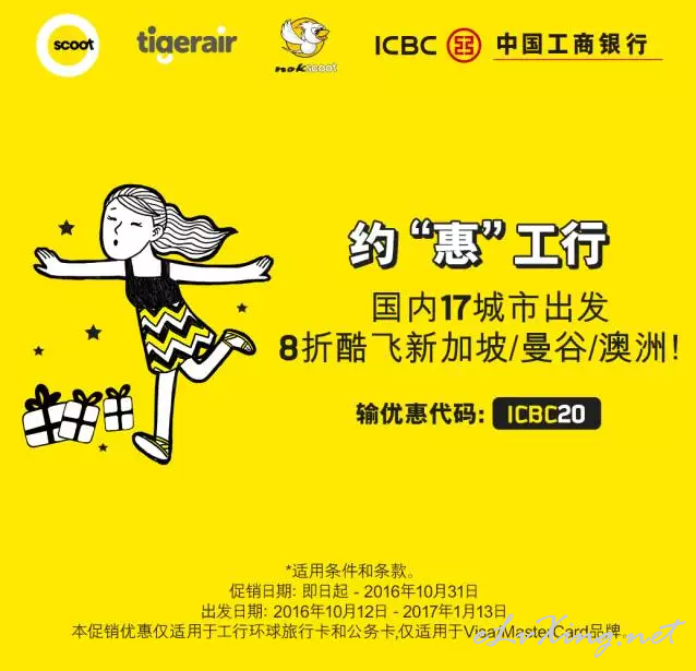酷航&工行 国内17城市出发,8折酷飞新加坡/曼谷/澳洲。