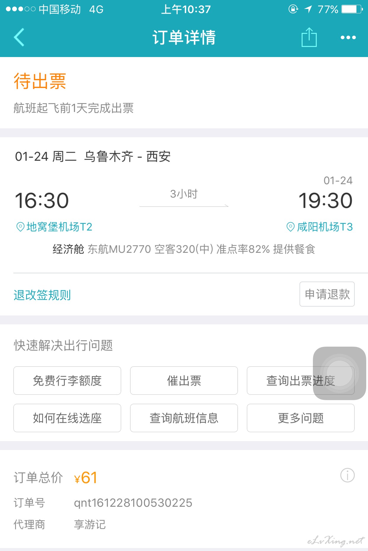 这几天给家人秒中了三张,刚用朋友给的帐号,帮他秒中乌鲁木齐去西安! 东航的,现在只有F舱。5500一张!等去哪儿来电改签!