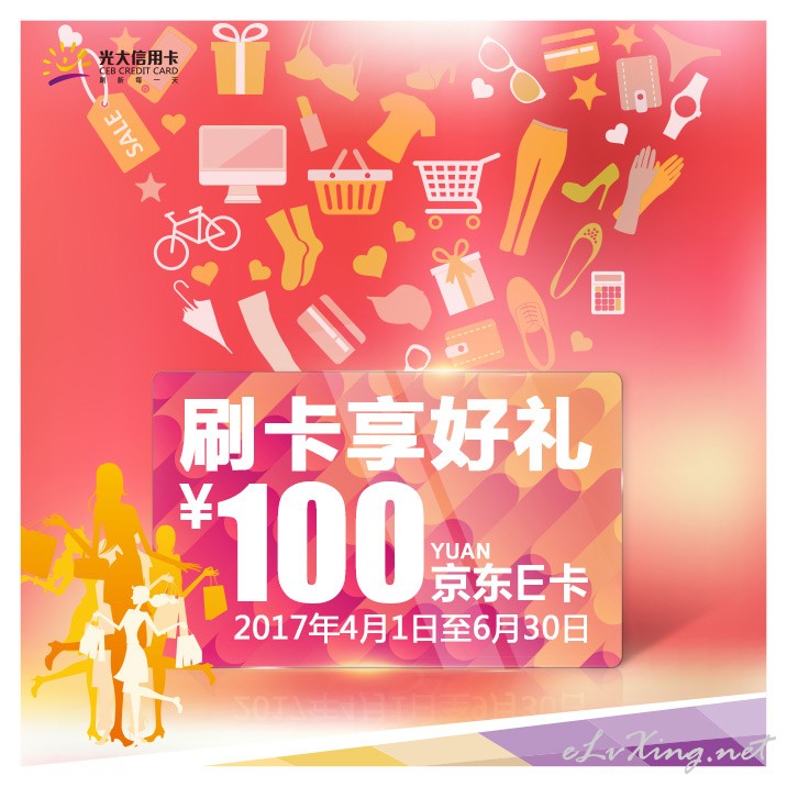 活动链接:http://xyk.cebbank.com/home/acti ... htm?contentId=32005 活动时间:2017年4月1日至2017年6月30日 活动对象:活动期间,成功申办银联品牌光大银行白金、钻石(尊尚)及无限等级信用卡的我行新客 ...