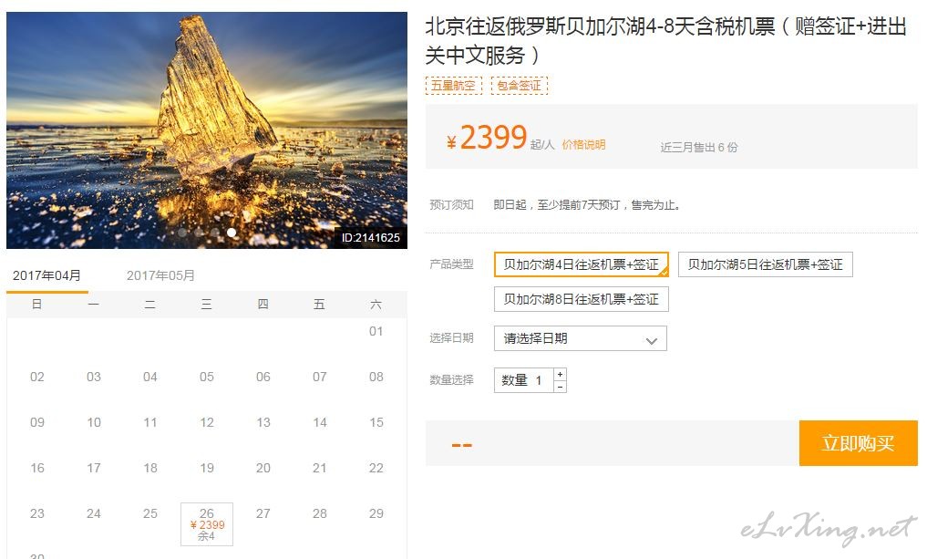 北京往返俄罗斯贝加尔湖4-8天含税机票+签证 2399元起 ...