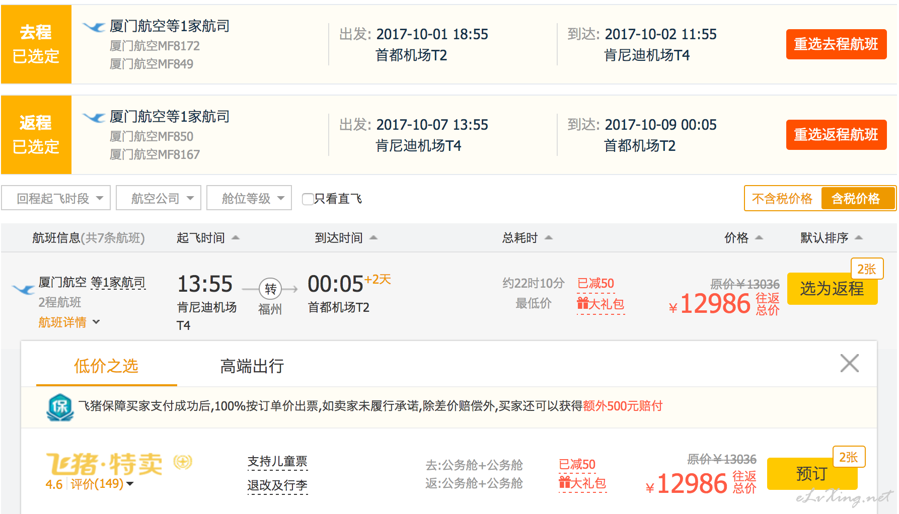 厦航 国内多城市经福州转飞纽约肯尼迪,统一价含税12986元,飞猪可查询出票,厦航官网贵个700块,公务舱组合为I+C,至多可累积64,000厦航里程。不多说,直接上图⬇️⬇️⬇️ 成都/乌鲁木齐往返纽约,含税13000+(乌 ...