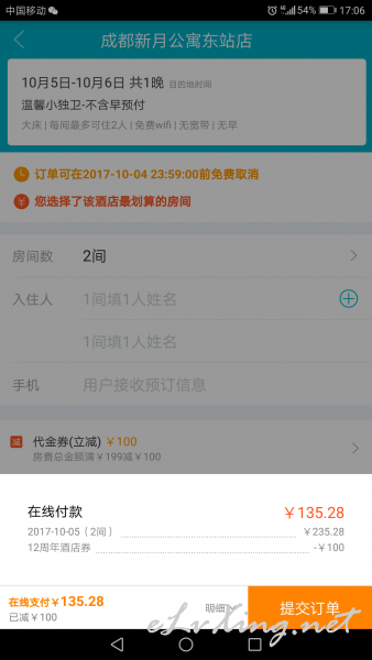 本帖最后由 loveqiu 于 2017-9-25 21:04 编辑 去哪儿网定国内酒店,满199-100,需代订。只要订单满199即可,不限天数,房间数,性价比高。