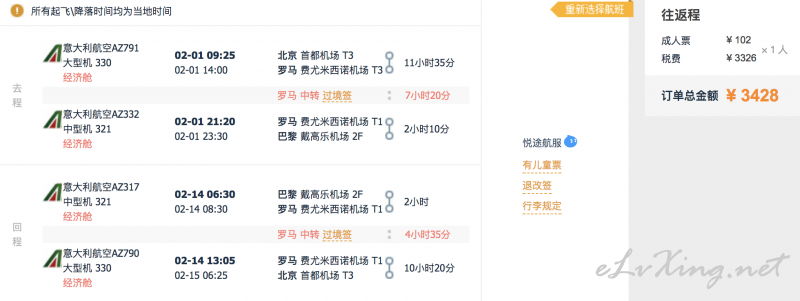 miyusky 发表于 2017-11-17 16:25 所以假如单买意航欧洲航段,到底包不包行李……想买个巴黎飞罗马的……