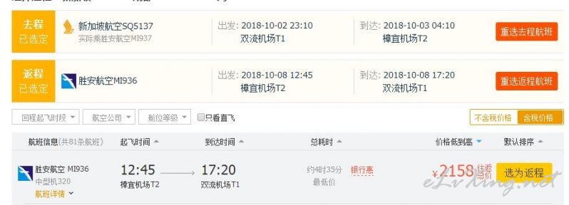 一、正国庆假期 1、成都往返新加坡, 10月2日出发,10月8日返回,去程新加坡航空,回程胜安航空,含税:2185元 以上特价均可通过飞猪预订 ...