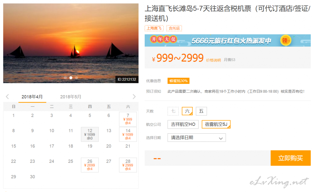4月7日 上海直飞长滩岛6天往返含税机票 999元 ...