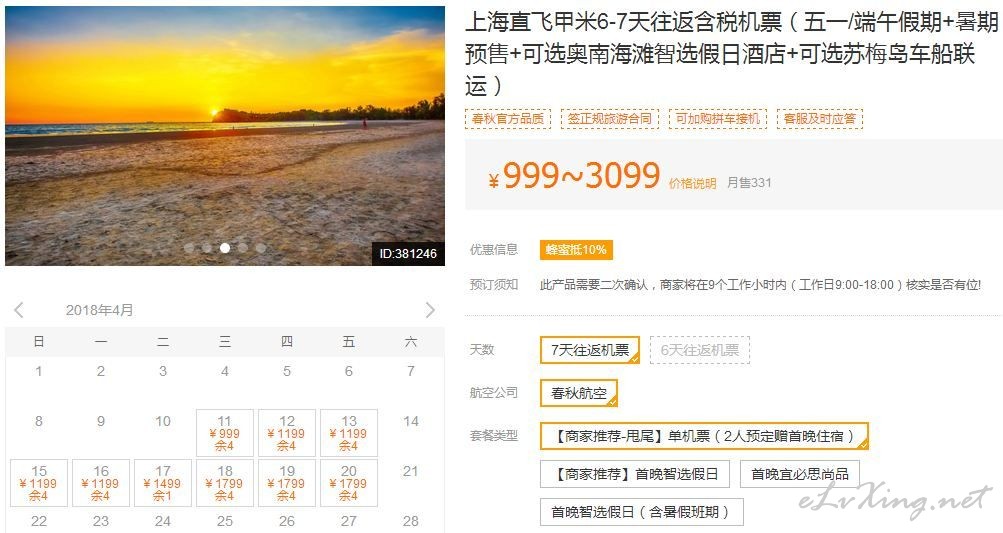 说走就走 4月11日 上海飞甲米7天往返含税机票+首晚酒店 ...