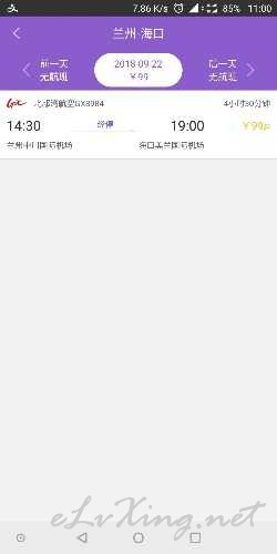 自2018九月20日起,到国庆前夕。99元从兰州到海口。每个日期目测有两三张票。快抢。