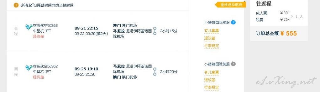 中秋!澳门=马尼拉往返含税555元