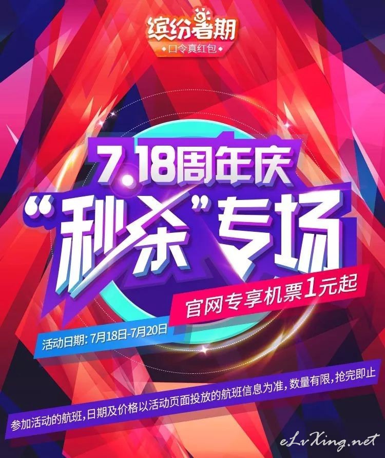 秒杀活动时间 2018年7月18日10:00—7月20日22:00 航班日期 2018年7-10月 https://pages.ch.com/acts/miaoshazhuanchangw718