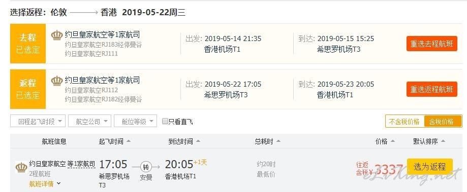 皇家约旦航空,香港往返欧洲多地含税3K2 ...