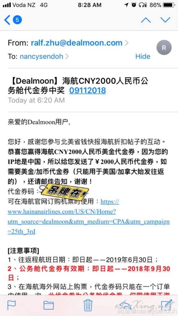 本帖最后由 nancysendoh 于 2018-9-12 09:01 编辑 可在海航官网订购机票时使用:https://www.hainanairlines.com/US/CN/Home?utm_source=dealmoon&utm_medium=CPA&utm_campaign=25th_3rd [注意事项]1、往返程航 ...