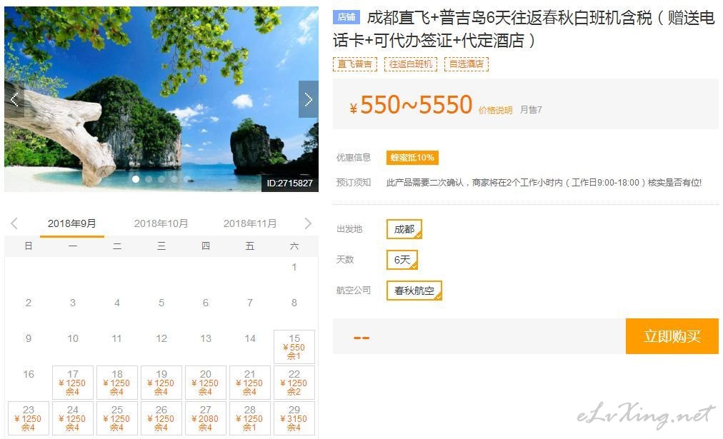 仅一张 9月15日 成都直飞普吉岛6天往返含税机票 550元 ...
