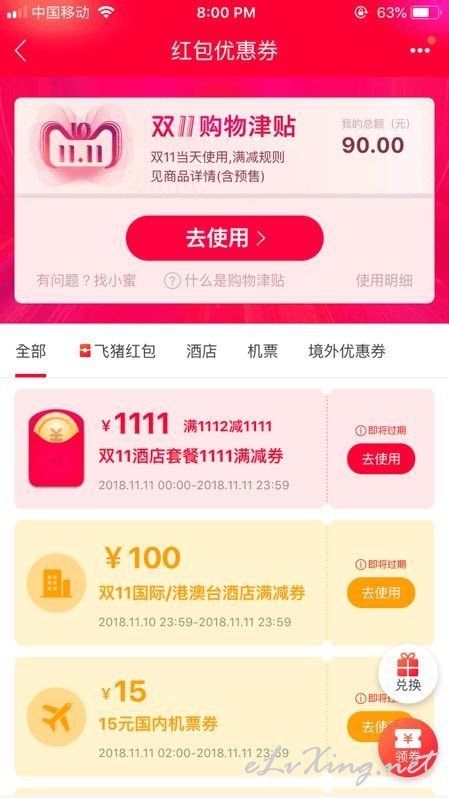 本帖最后由 大头阿姨 于 2018-11-11 20:43 编辑 晚上闲着无聊想刷刷有没有什么优惠券,纯手动点到的,不过粗粗看了一下只能购买酒店套餐,类似【几晚XXX集团酒店通用兑换】的那种。 ...