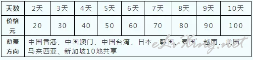 即日起至12月31日 每天10元,10地共享 ,发送短信,GMJWSS*至 10086,根据短回复二次确认即可办理 温馨提示 “*”代表开通的天数2-10天,如开通2天:GMJWSS2发送到10086 香港、澳门、台湾、韩国、日本、泰国 ...